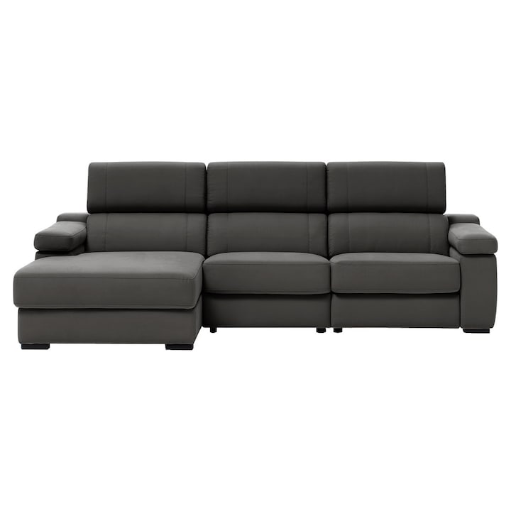 Por um lado, a sua chaise longue do lado esquerdo, tem uma arca interior que ajuda a poupar espaço e, por outro lado, o seu encosto é reclinável com sistema eléctrico e o seu apoio para os pés é elevatório.