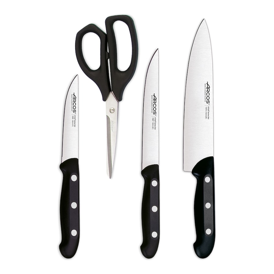 - 1 Faca de verdurasLongo: 10Unidade de medida: cm de folha1 Faca de cozinhaLongo: 15Unidade de medida: cm de folha1 Faca do ChefLongo: 21,5Unidade de medida: cm de folha1 TesouraLongo: 21,5Unidade de medida: Centímetros