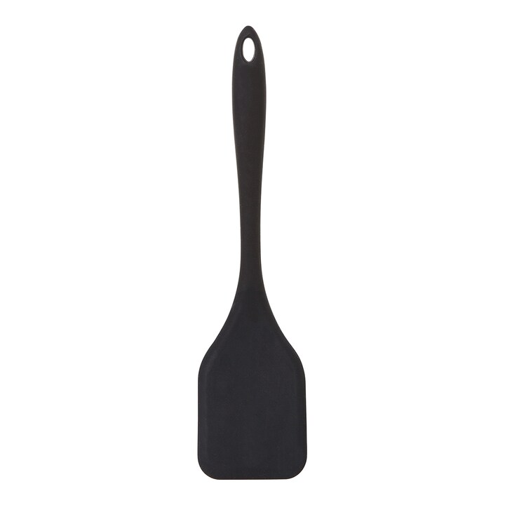 Espátula de silicone utilizada para retirar alimentos da frigideira, mexer ovos mexidos e virar os alimentos, protegendo o utensílio de cozinha durante a sua utilização.