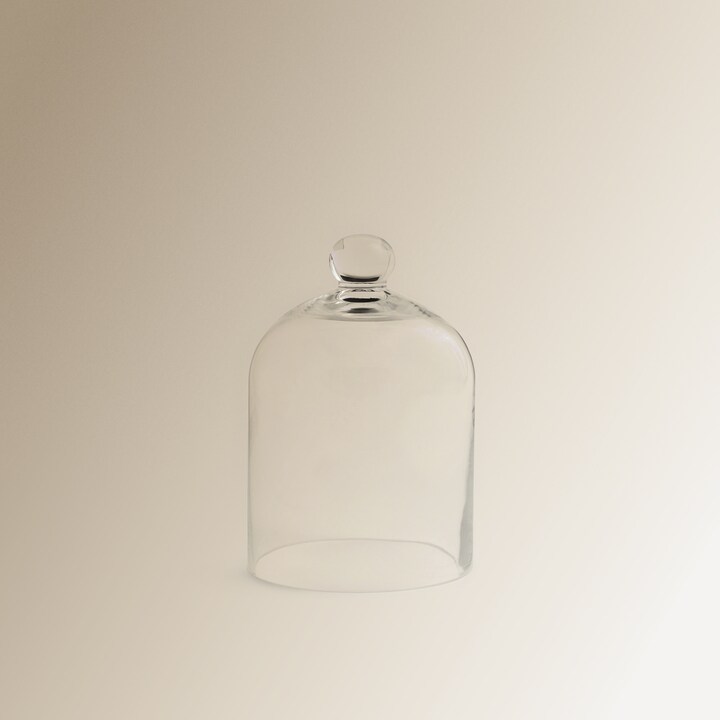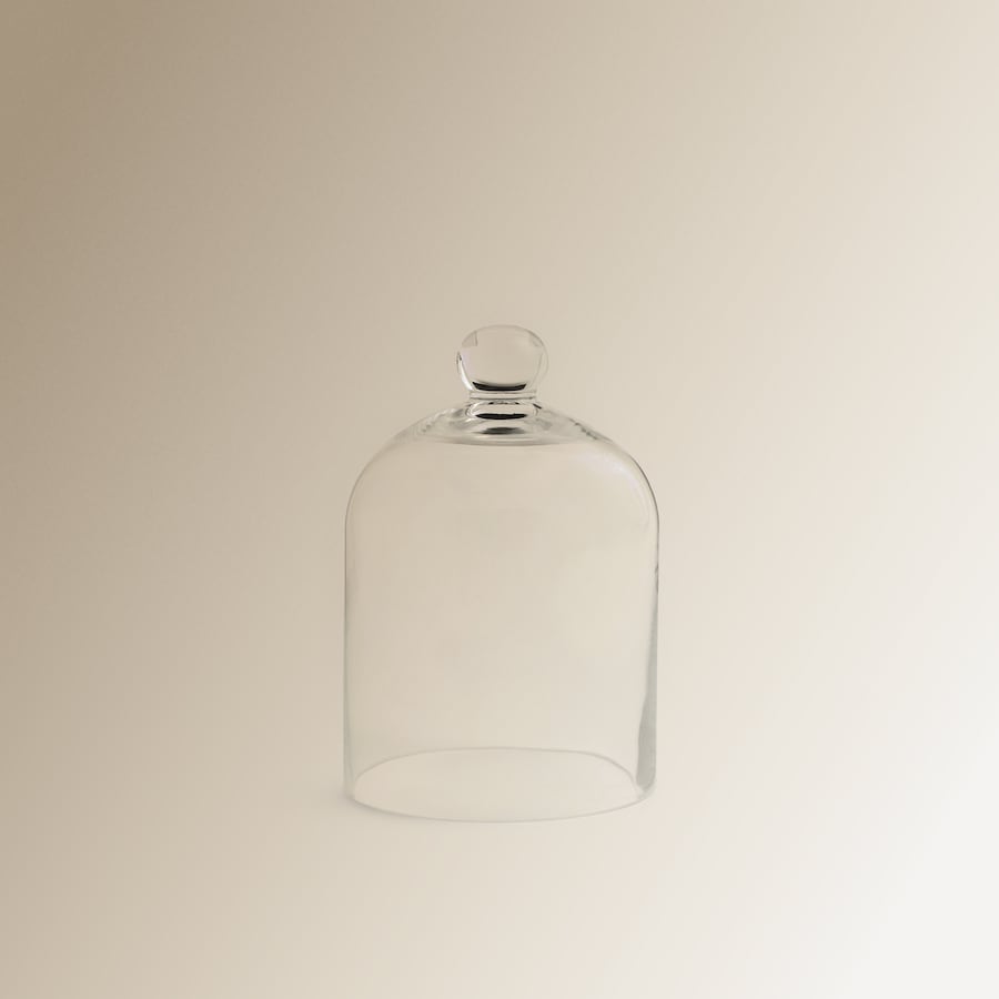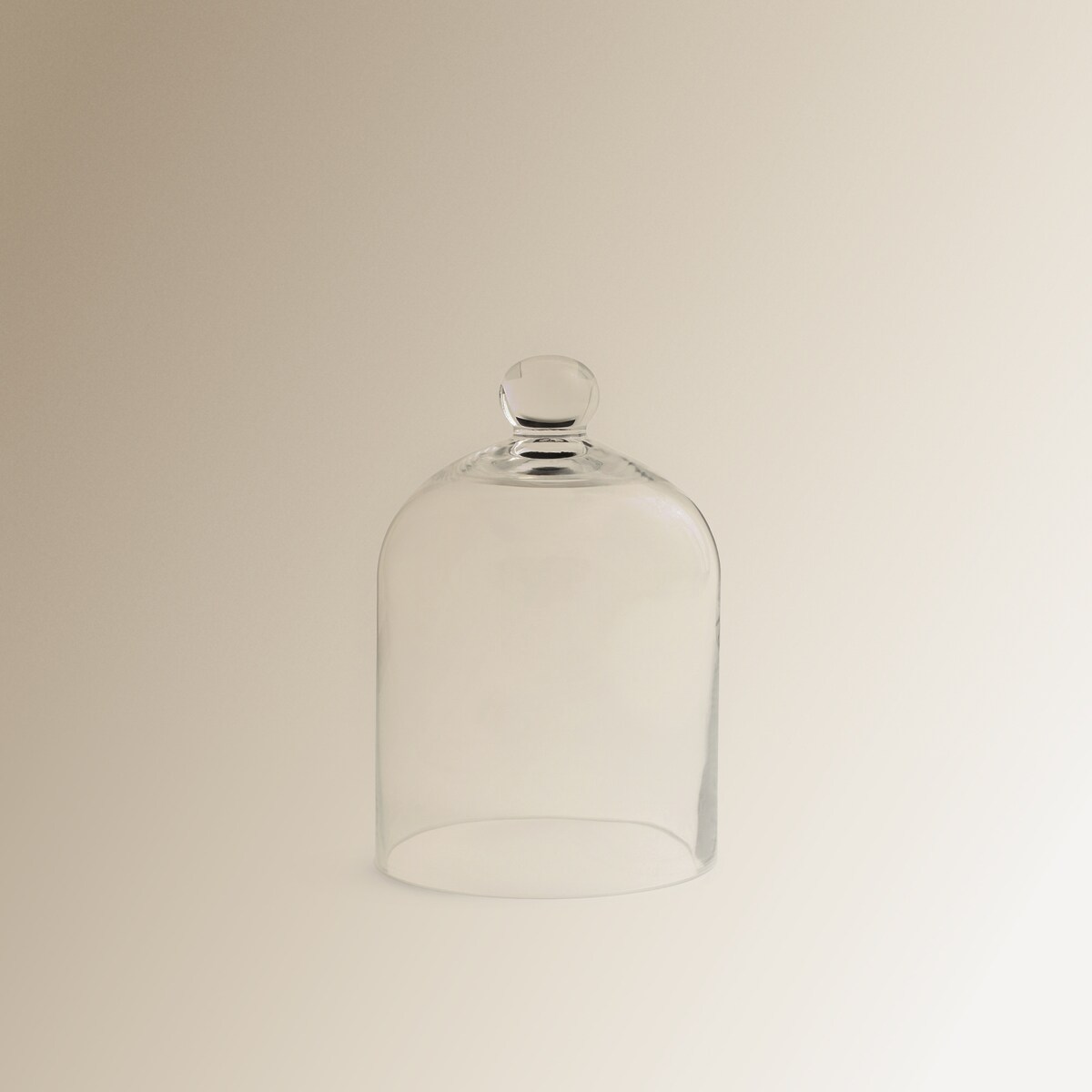 Figura decorativa de cristal em forma de sino, concebida para complementar a decoração de interiores. O seu design transparente permite integrá-la em diferentes espaços, como mesas, estantes ou quartos, acrescentando um elemento decorativo simples e funcional.