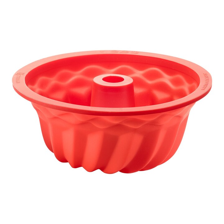 Conjunto de dois moldes Savarim para preparar bolos de forma redonda com orifício central. O design com tubo central permite uma cozedura rápida e uniforme, ao facilitar a distribuição do calor até ao centro. São fabricados em silicone, o que os torna antiaderentes e flexíveis, facilitando a desenformagem e a limpeza. São adequados para utilização em fritadeira de ar, resistentes a altas temperaturas e isentos de BPA.