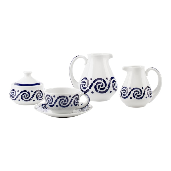 - 2 Tijelas de pequeno-almoço com pratoHabilidade: 325 ml1 Leiteira PequenaHabilidade: 560 ml1 Leiteira GrandeHabilidade: 1050 ml1 AçucareiroHabilidade: 425 ml