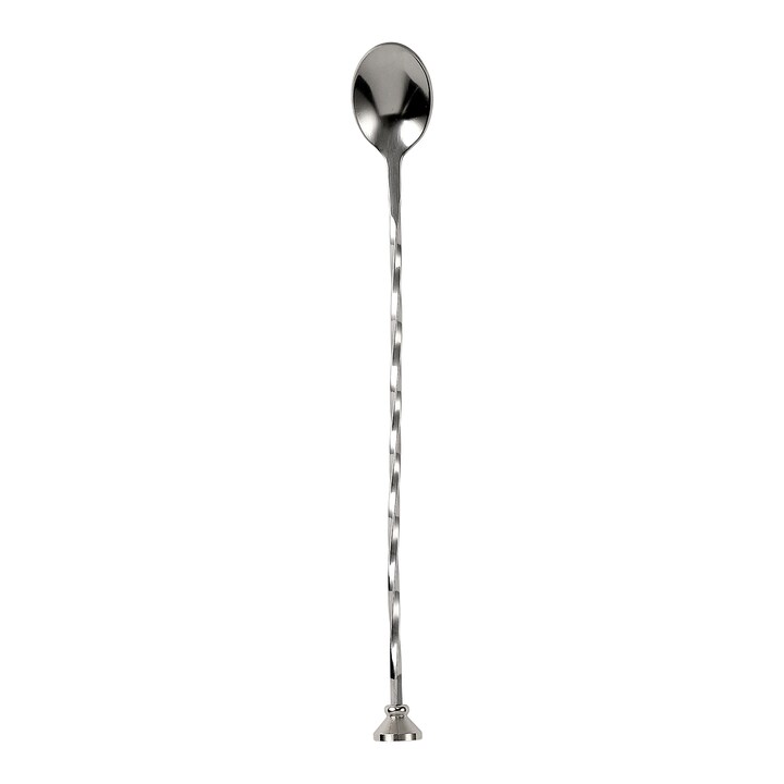 Colher misturadora fabricada em aço inoxidável, concebida para misturar e dosear ingredientes em combinados. Apresenta um cabo extralongo que facilita a preparação de cocktails em camadas e uma extremidade em piñón para macerar ingredientes como folhas ou especiarias.