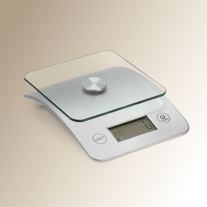 Balança de cozinha eletrónica concebida para medir alimentos e ingredientes com precisão, facilitando o acompanhamento de receitas e planos alimentares. Dispõe de ecrã LCD, indicador de sobrecarga e de bateria fraca, e permite pesar até 5 kg com uma precisão de 1 grama.