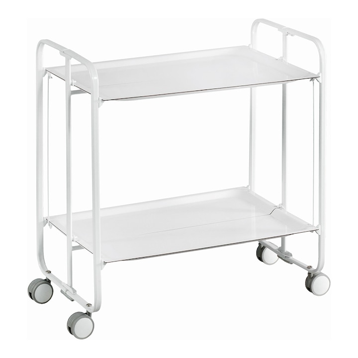 Estrutura em alumínio branco: resistente, leve e duradoura ? Tampas em melamina branca fosca: superfície fácil de limpar ? 4 rodízios multidirecionais: mobilidade total ? Design dobrável: fácil de guardar ? Ideal para refeições, apoio de cozinha, snacks ou serviço de mesa