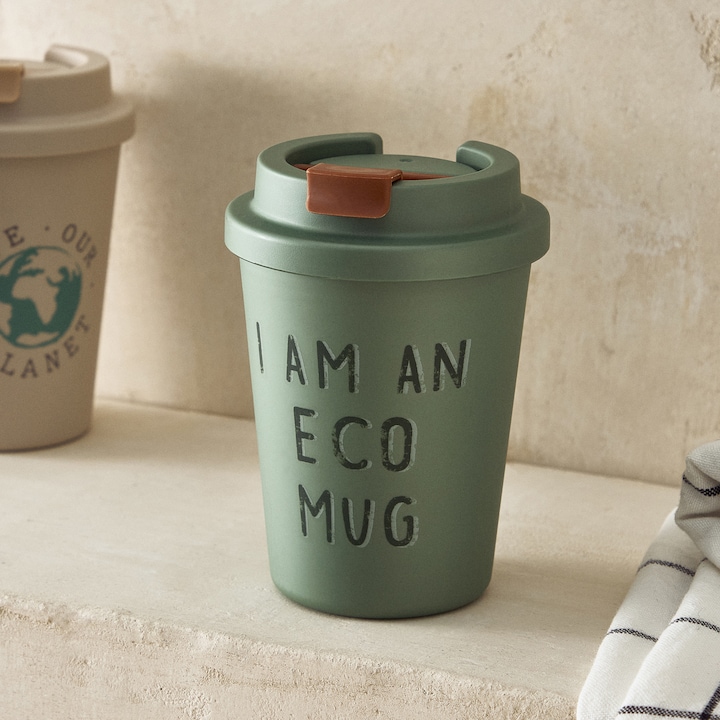Caneca portátil tipo mug, concebida para utilizar no carro ou ao caminhar, reutilizável e com base antiderrapante. Fabricada em PLA, um material orgânico biodegradável proveniente de recursos naturais. Apta para micro-ondas e máquina de lavar loiça.