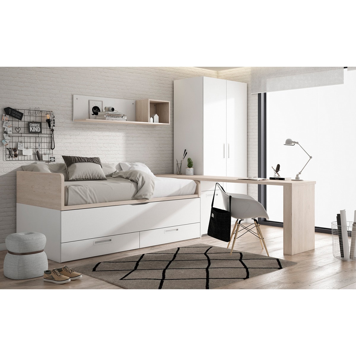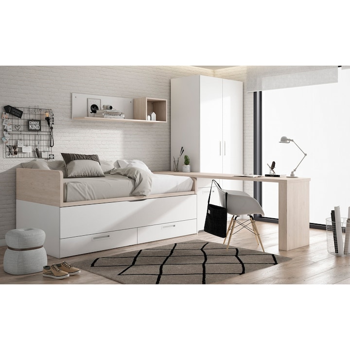 Quarto Juvenil 2 Camas e 2 Gavetas com Encosto Esquerdo Alto Mio