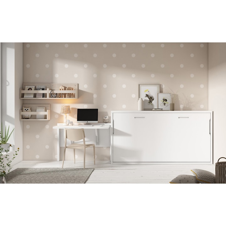 Quarto juvenil com cama rebatível horizontal branco Mio