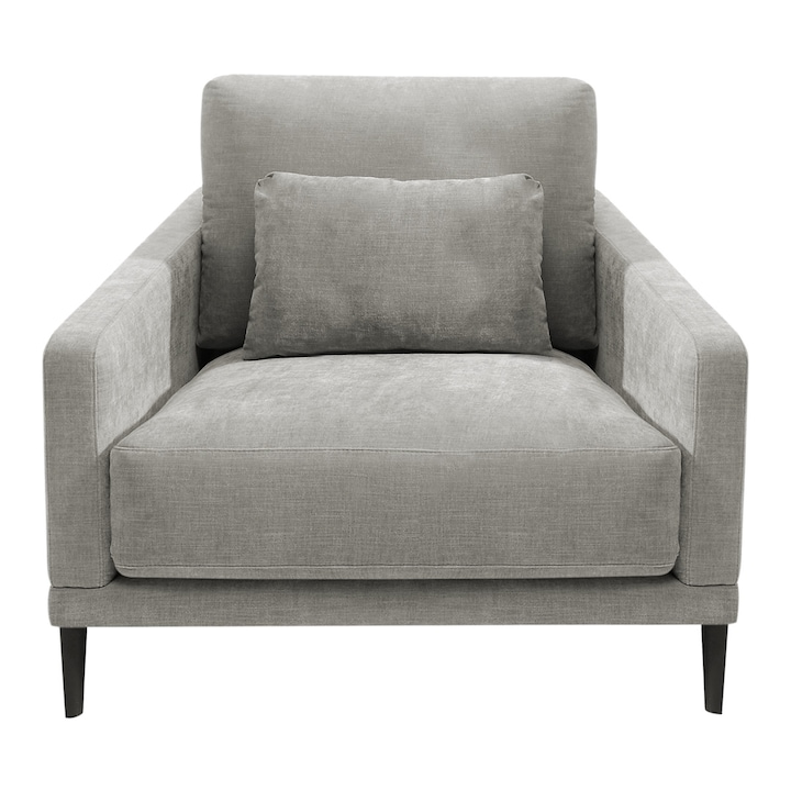 - 'Estrutura'1100% Madeira de pinho e aglomerado'Estofo'1100% Poliéster'Pés'4100% Metal'Assento'1100% Poliuretano com cobertura de fibra'Costas'1100% Fibra oca com silicone'Braços'2100% Poliuretano com cobertura de fibra