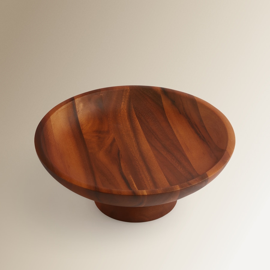 Fruteira com base em madeira de acácia natural, concebida para complementar a decoração da mesa ou da cozinha com um estilo intemporal e um toque natural.