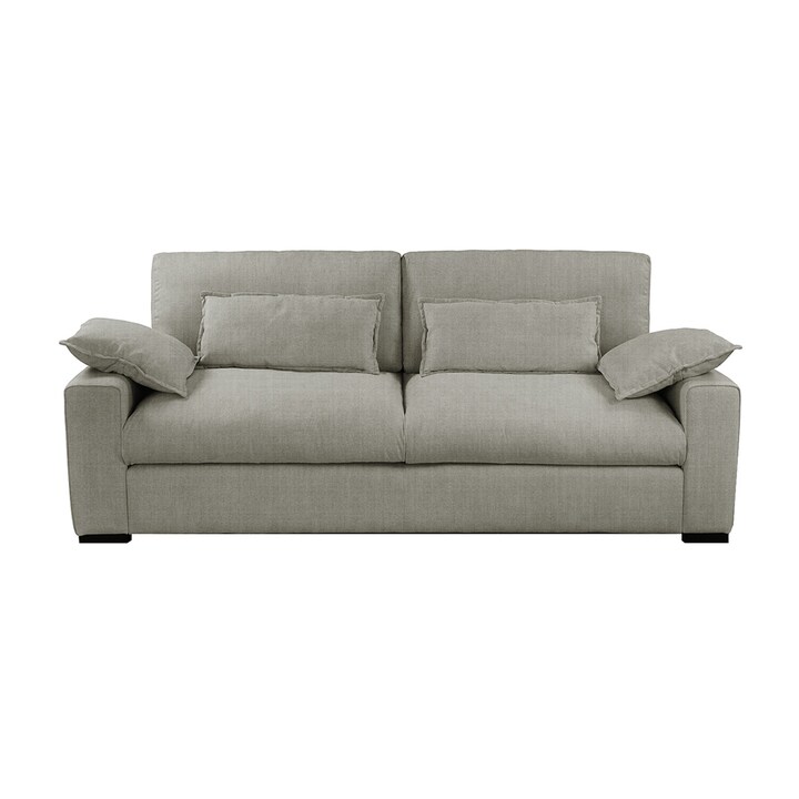 Sofá de 2 lugares estofado em tecido de poliéster e algodão, concebido para oferecer resistência ao peeling, ao uso e à abrasão, bem como elevada durabilidade face à incidência da luz. Pertence a uma série modular que permite configurar a amplitude e a forma do sofá, ajustando-se ao espaço disponível mediante a escolha do número de assentos.