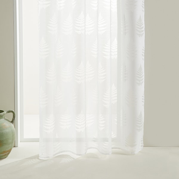 Voilage à double ruban confectionné en 100 % polyester à imprimé fougères.