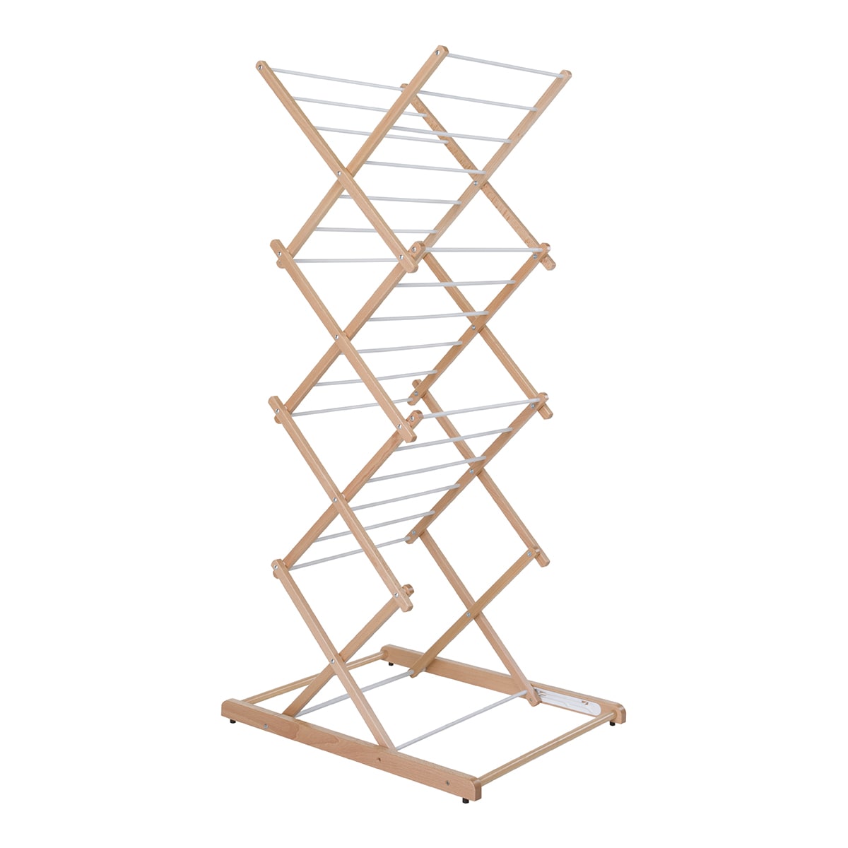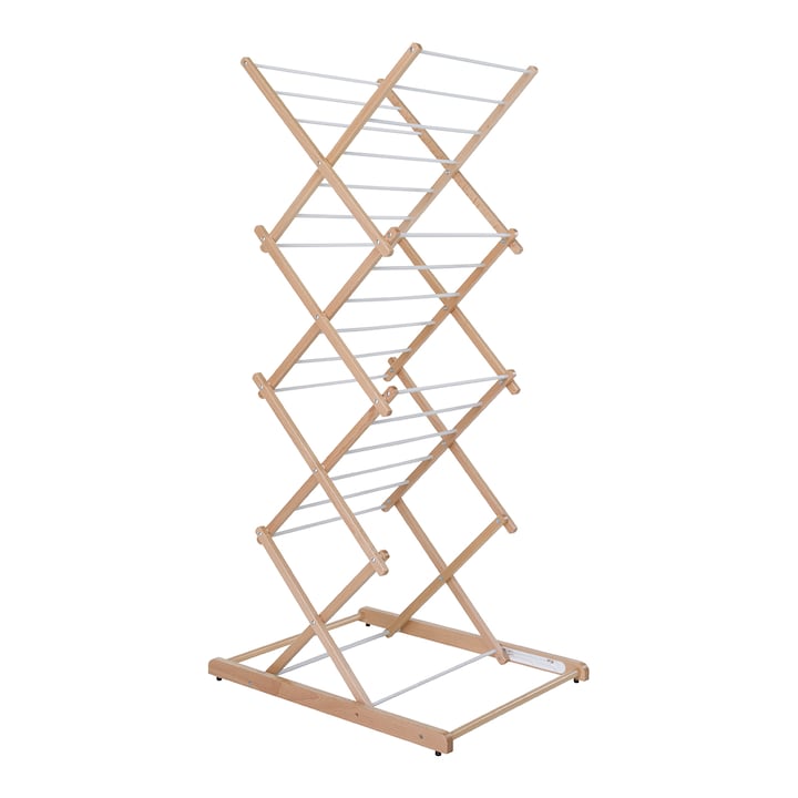 Estendal com estrutura dobrável que oferece uma superfície para pendurar roupa. Dispõe de um comprimento total de corda para estender que permite secar várias peças em simultâneo.