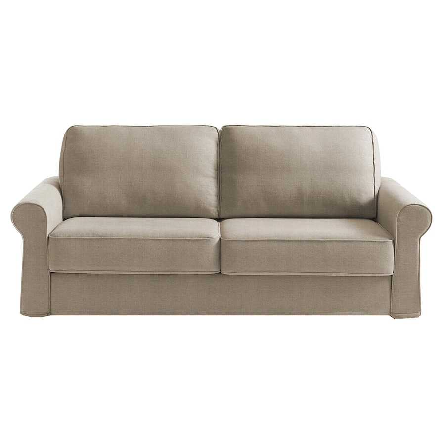 Sofá estofado em tecido de poliéster e algodão com um toque agradável. Proporciona uma posição sentada firme.