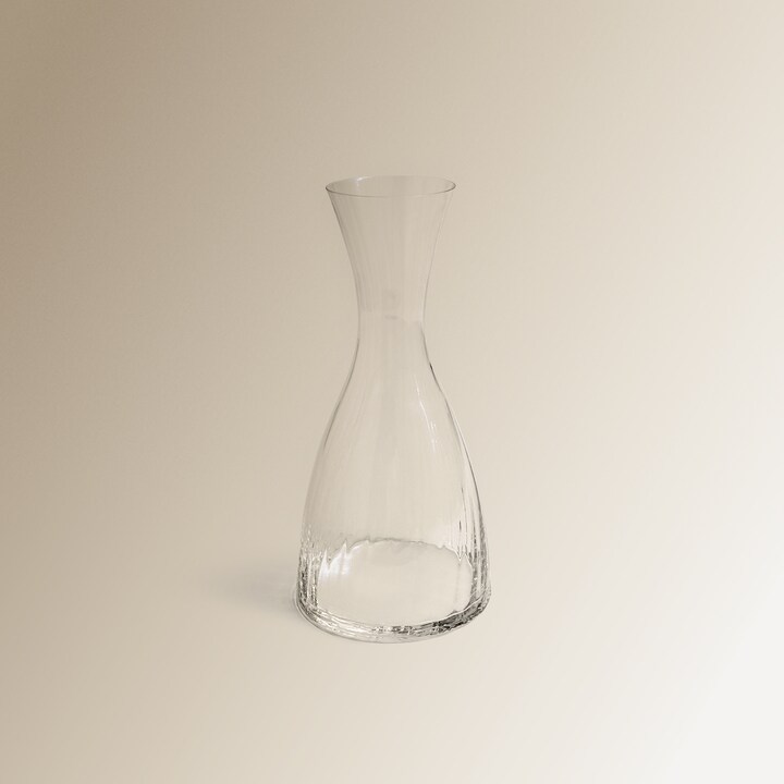 Garrafa de água da colecção Bellver de inspiração vintage, perfeita para qualquer mesa. Feita de vidro com bordos polidos para um acabamento mais suave e brilhante. Capacidade: 1,2 litros.