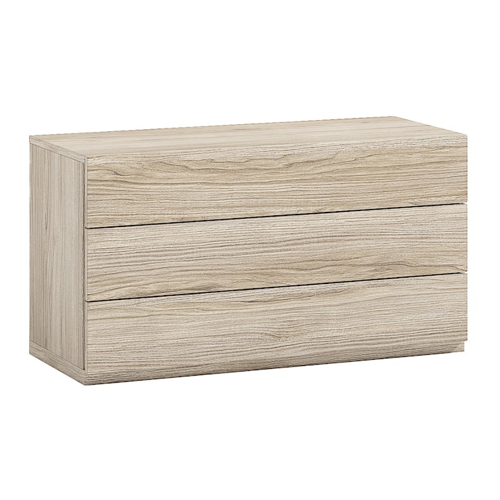 Cómoda com 3 gavetas em quadro melamínico . As gavetas têm frentes de 19 mm, corrediças ocultas com ajuste e sistema de auto-travagem.