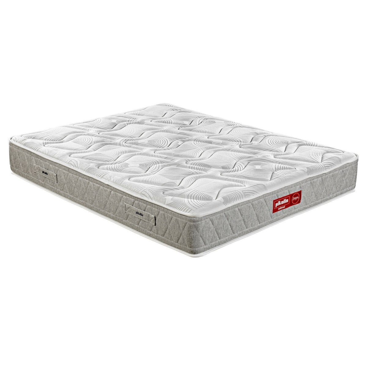 Quatro pegas bordadas que facilitam a manipulação do colchão na hora de o rodar.