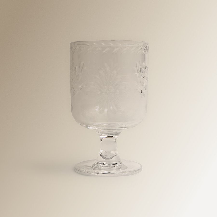Copo de vinho da coleção Sonora feito de acrílico, um material leve e resistente que o torna perfeito para utilização no exterior. É decorado com um relevo vegetal apelativo, com uma forma clássica e estilo sofisticado.