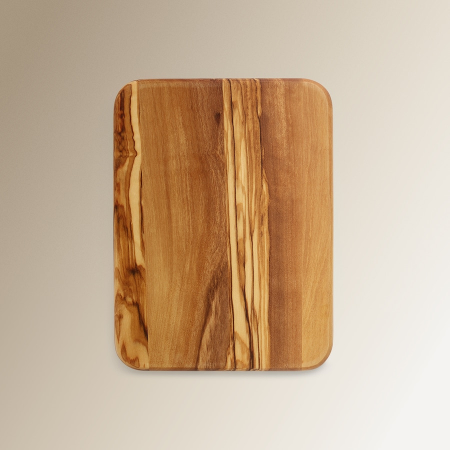 Tábua de cortar em madeira de oliveira, concebida para uso diário na cozinha. Oferece resistência à humidade e propriedades antibacterianas, sendo adequada para cortar todo o tipo de alimentos.