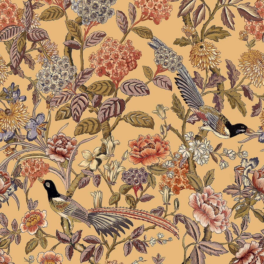 Papel de parede com estampado de faisões entre peónias, produzido com tintas à base de água e materiais amigos do ambiente. Apresenta certificação de resistência ao fogo BS2-D0 e aplica-se colando apenas a parede com cola de metilcelulose de alta qualidade (não incluída). O desenho tem um rapport direito que indica a distância entre a repetição do padrão, facilitando a sua aplicação.