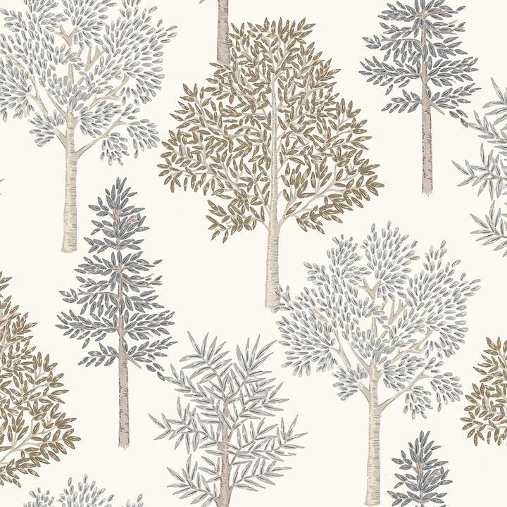 Papel de parede com desenho vegetal de árvores.