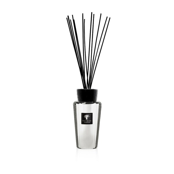 O difusor de fragrância para casa Platinum é um frasco delicadamente coberto com uma tinta metálica que lembra o metal precioso cujo nome ostenta. Finalizado com uma tampa de baquelite preta gravada com um motivo de raiz, este difusor de perfume é um objeto verdadeiramente bonito.