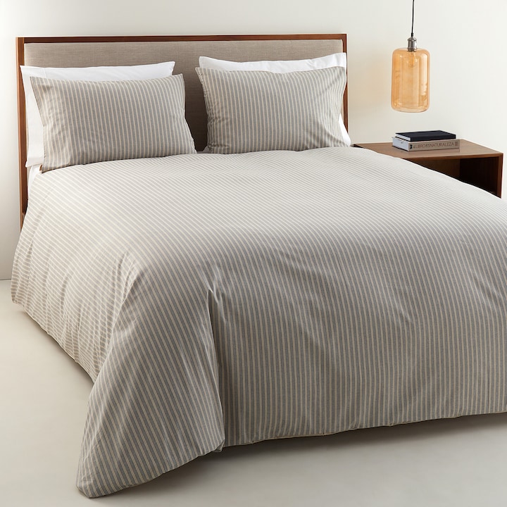 Parure housse de couette élaborée en Turquie à rayures en fil teinté.