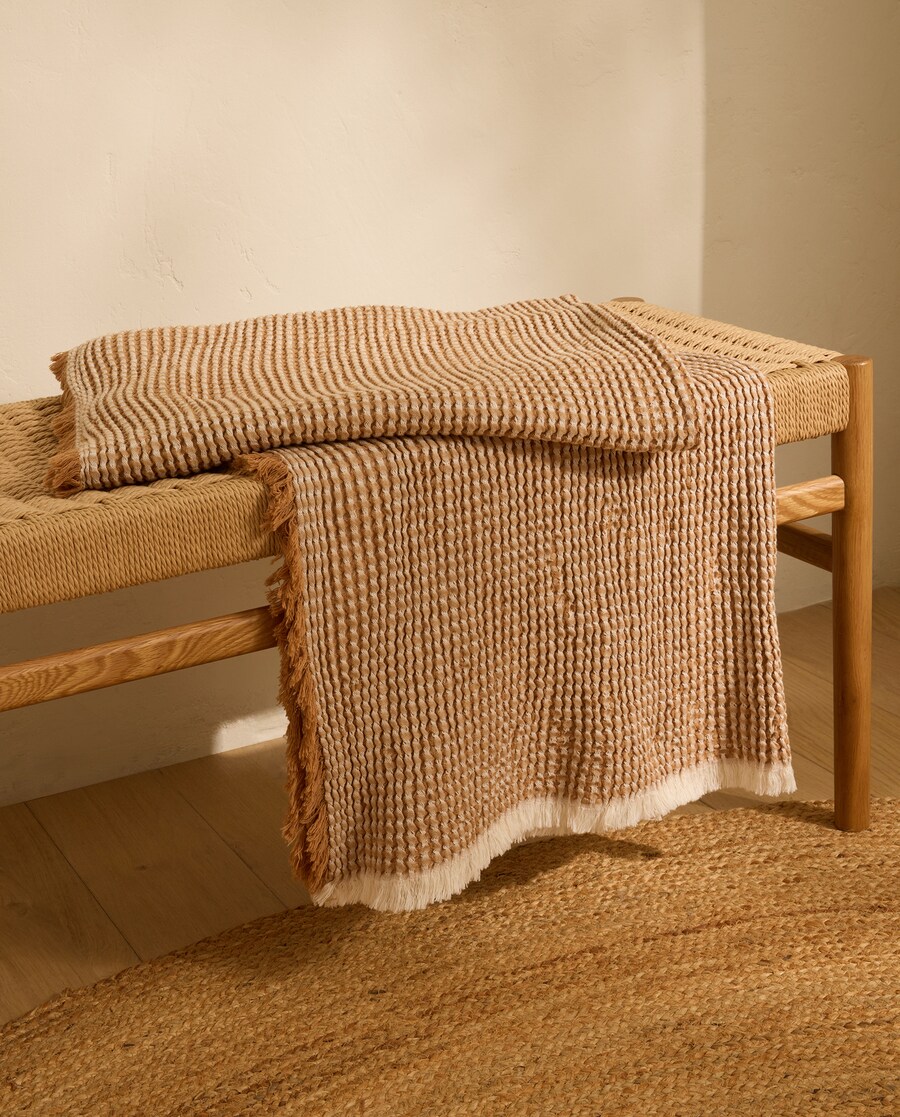 Manta decorativa fabricada em Portugal com um design liso.