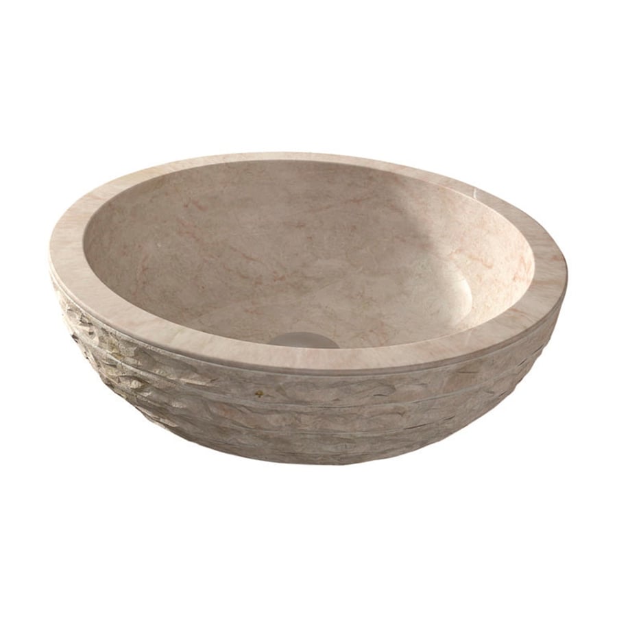 Lavatório concebido para instalação sobre bancada, fabricado em pedra a partir de seixos de rio, o que torna cada peça única. Este lavatório não possui ladrão e foi pensado para utilização em casas de banho, acrescentando um elemento funcional e distintivo à zona de higiene pessoal.