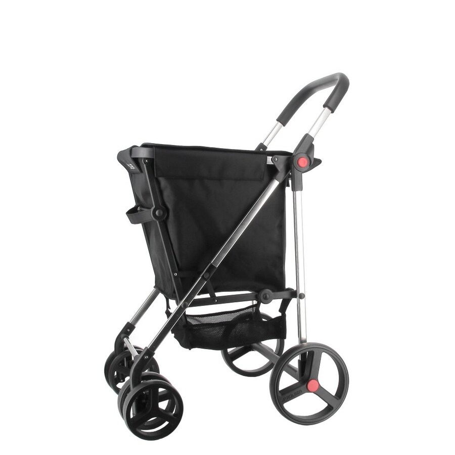 Carrinho de compras dobrável em alumínio com 4 rodas, 2 giratórias e 2 XL que podem ser facilmente retiradas e colocadas. Permite o transporte de cargas maiores de forma simples e confortável, com 10 posições de pega que o tornam 100% ergonómico, adaptável a cada pessoa e altura. O seu saco de lã de grande capacidade tem um duplo bolso interior, um grande bolso exterior e uma grande aba dobrável. Além disso, incorpora um gancho exterior para pendurar sacos, guarda-chuvas, etc., e um cesto inferior para colocar pequenos objectos.