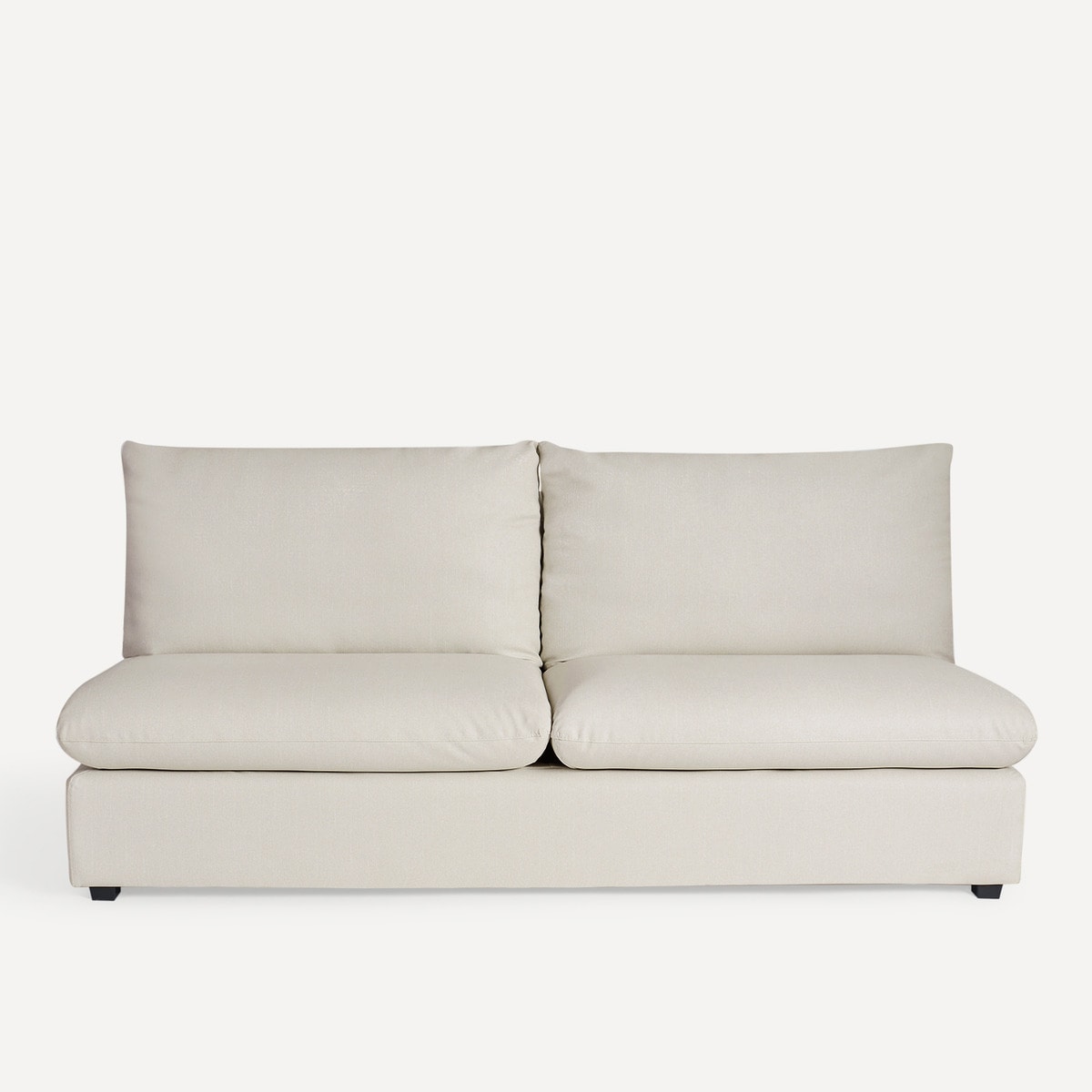 Este módulo tem 2 almofadas de assento e 2 almofadas de encosto cosidas à própria estrutura.