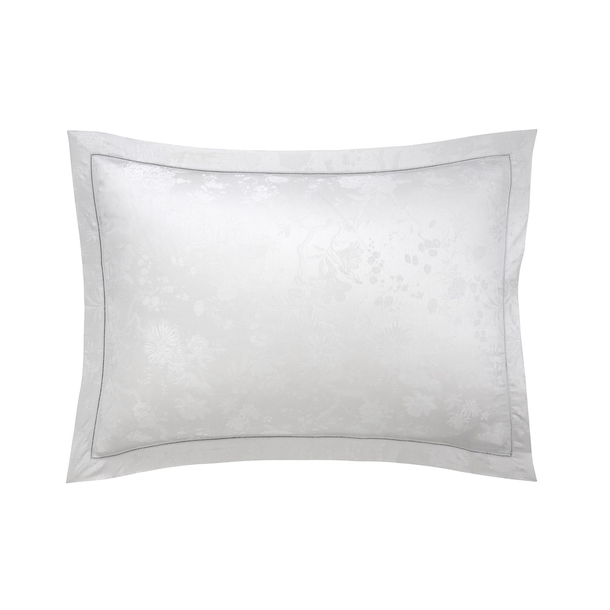 Fronha com design jacquard floral com fecho de aba e folho de 10 cm.