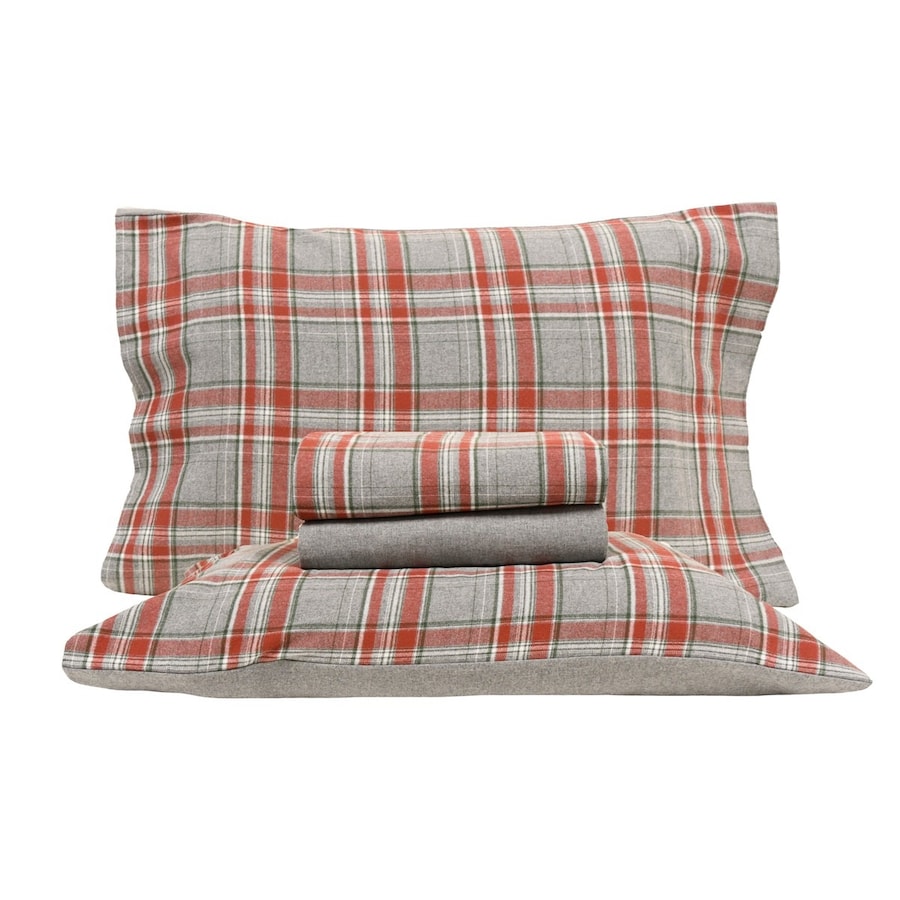Sinta a suavidade e aconchego ideais para a temporada mais fria do ano com a coleção KELSO. Com tradicionais linhas em xadrez, nas cores vermelho, branco e verde, sob um suave fundo cinza, este jogo de lençóis irá mantê-lo quente e confortável durante o seu sono.