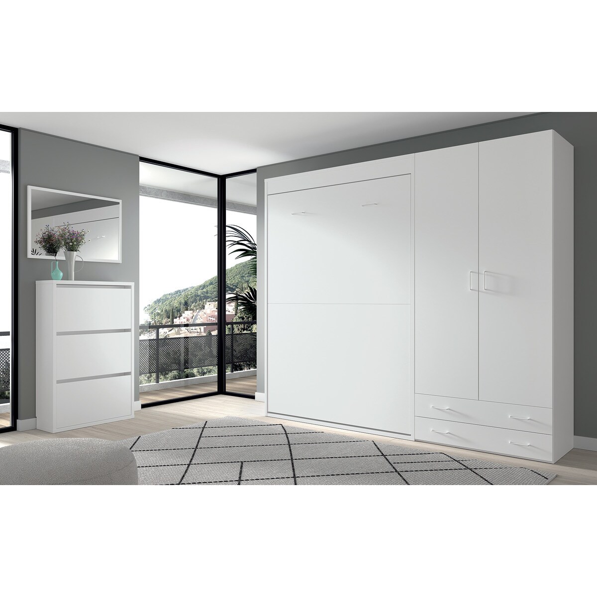 Quarto Juvenil com Cama de Casal Rebatível Noel - Branco