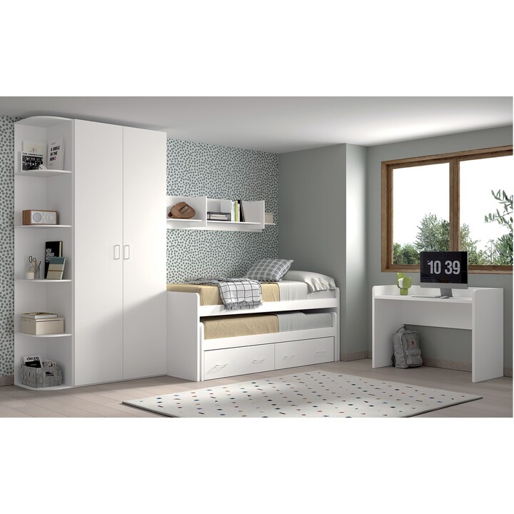 Quarto Juvenil com Cama de Gavetão e 2 Gavetas Noel - Branco