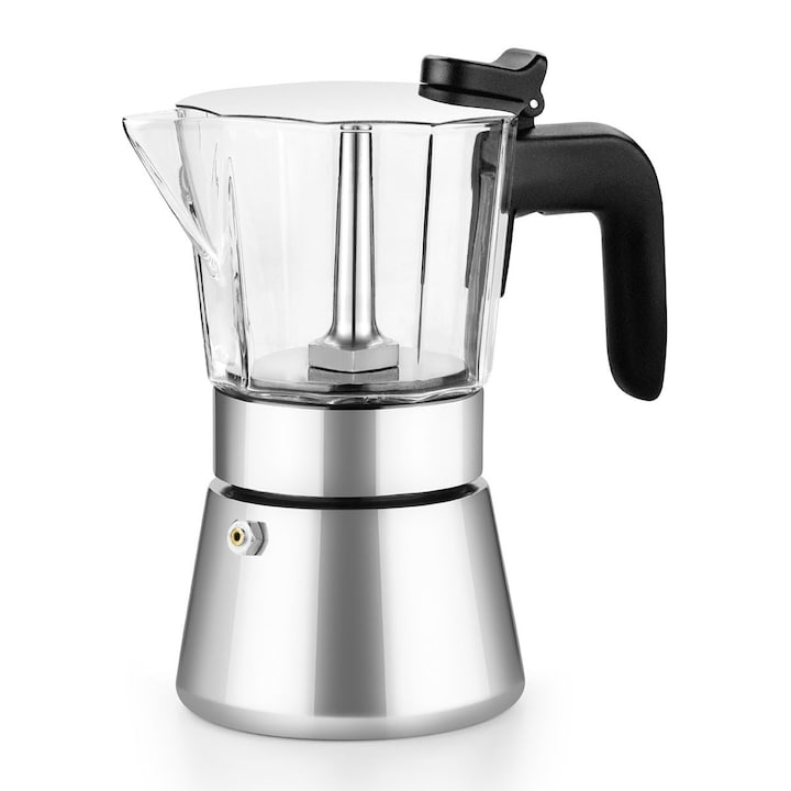 A Cafeteira Flavour Crystal é a cafeteira perfeita para preparar sempre um excelente café com todo o seu aroma e sabor. Combina o clássico design italiano com um corpo em aço inoxidável e a transparência do borossilicato na sua parte superior, um material de enorme resistência térmica que permite ver o café a todo o momento sem ter de destapar a cafeteira, mantendo todo o seu aroma e temperatura. A forma do bico de saída foi concebida para garantir que o café é servido na perfeição e sem derrames.