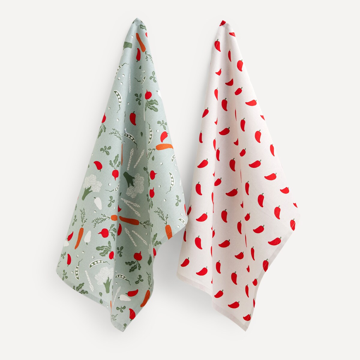 Conjunto de 2 Panos de Cozinha em Algodão Vegetais