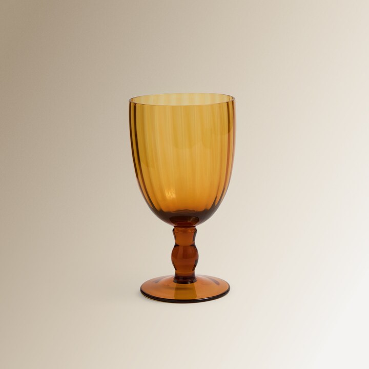 Copo de vinho em cristal com relevo, que combina um estilo vintage com funcionalidade para o serviço de bebidas. Adequado para utilização em mesas e eventos que exijam apresentação de vinho.