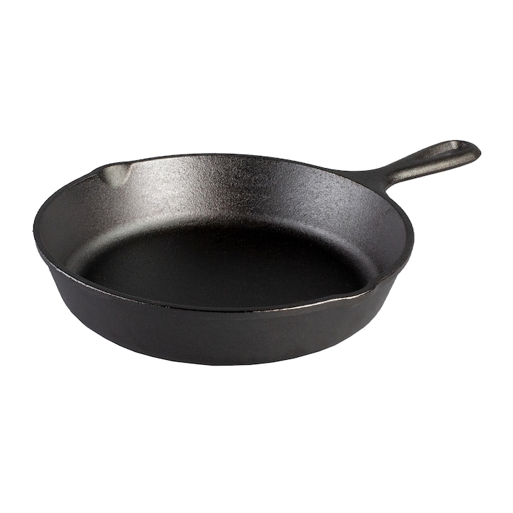 Frigideira de ferro fundido que aquece rapidamente e mantém o calor para uma cozedura uniforme. Compatível com todos os tipos de fogão, incluindo forno, chama direta e brasas. Permite a utilização de utensílios metálicos sem se danificar e não necessita de revestimento antiaderente, melhorando com o uso para evitar que os alimentos se agarrem.