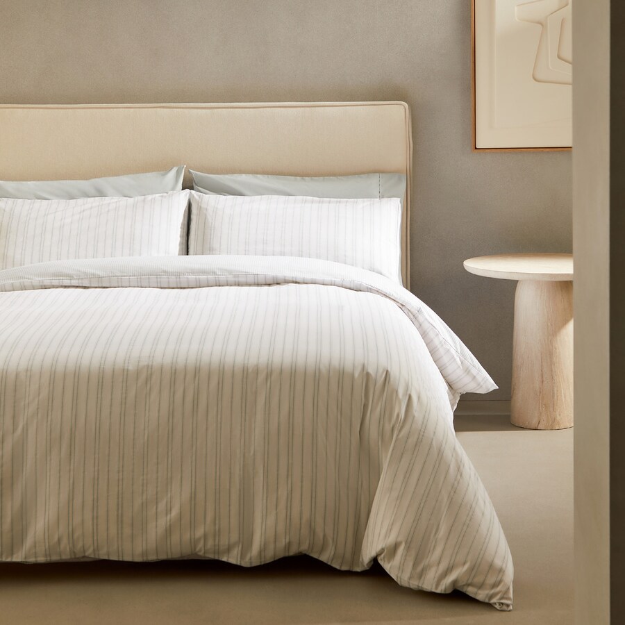 Conjunto de capa de edredão com desenho às riscas.