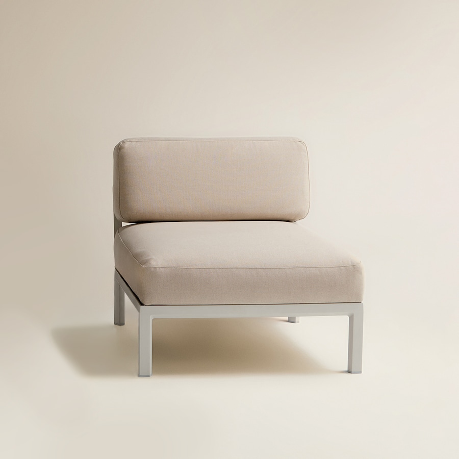 Módulo central para configurar o sofá de jardim Maximo com estrutura em polipropileno de fibra de vidro regenerado com tratamento anti-UV.
