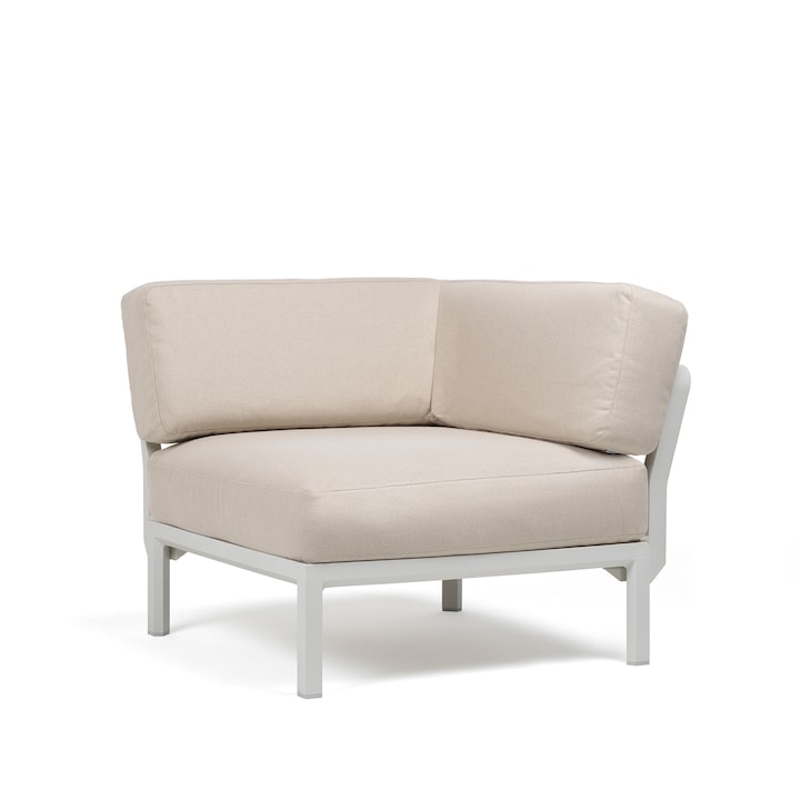 Módulo de canto para configurar o sofá de jardim Maximo com estrutura em polipropileno de fibra de vidro regenerado com tratamento anti-UV.