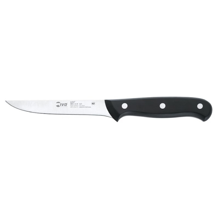 Lâmina estampada: aço inox de alta qualidade com crómio-molibdénio-vanádio (X50 Cr Mo V15). Cabo: POM - polioximetileno.