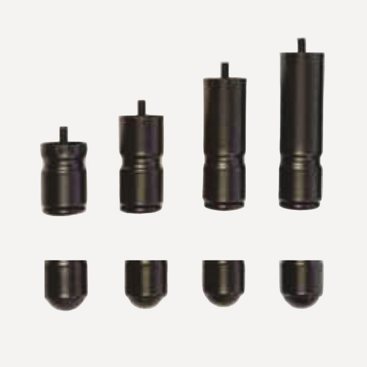 Pé metálico preto com base esférica de 5 cm de diâmetro tipo taco até 18 cm de altura para utilizar nas bases Paladium Adapt, Firme e Adapt (opções 8, 11, 15 e 18 cm) e com 26 cm para a base Tapimola.