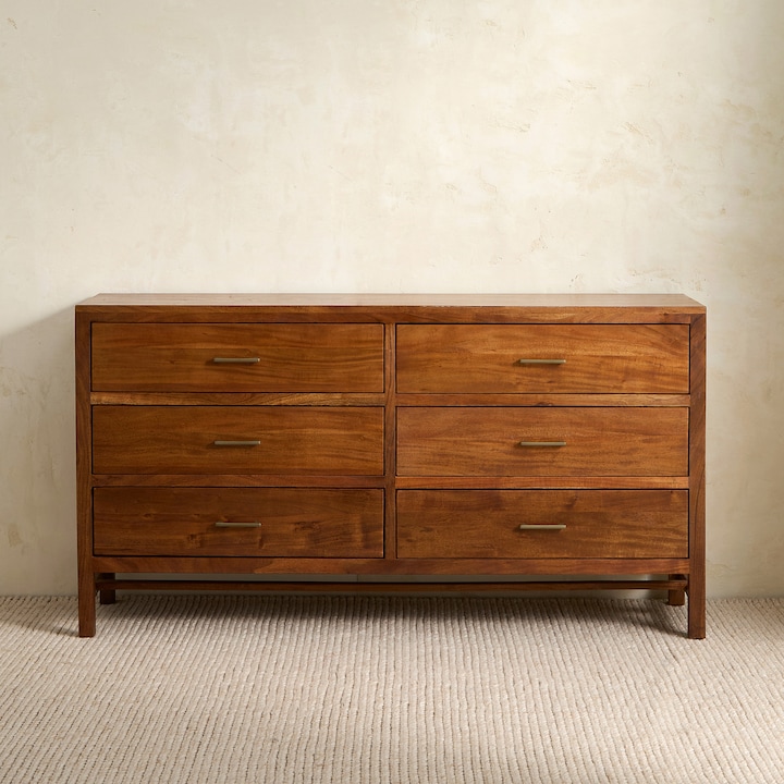 Cómoda de Madeira de Acácia com 6 Gavetas