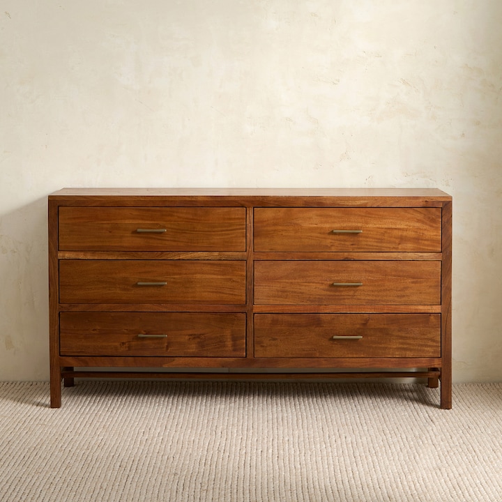 Cómoda de Madeira de Acácia com 6 Gavetas