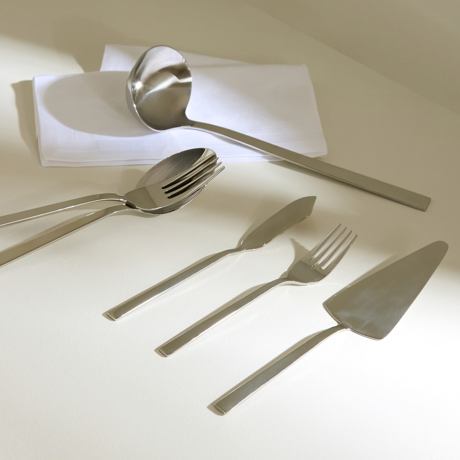 - 12 Colher de mesaLongo: 20512 Garfo de mesaLongo: 20512 Facas de carneLongo: 21412 Colher de caféLongo: 14112 Garfo de SobremesaLongo: 19112 Faca de sobremesaLongo: 20512 Colheres de caféLongo: 11312 Garfo de peixeLongo: 21412 Faca de PeixeLongo: 2031 Colher de servirLongo: 2351 Garfo de servirLongo: 2301 Faca de tarteLongo: 2501 Concha de sopaLongo: 272