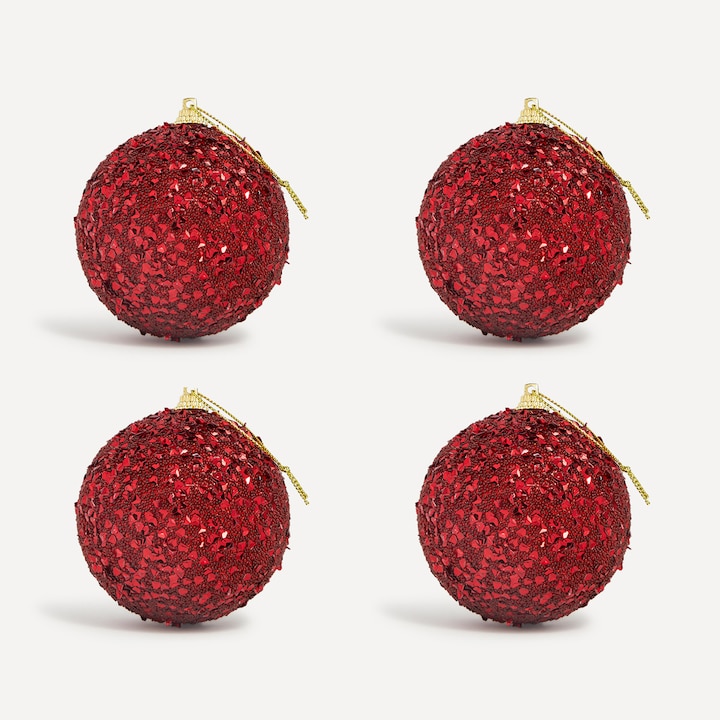 Conjunto de 4 Bolas Vermelhas com Pedras