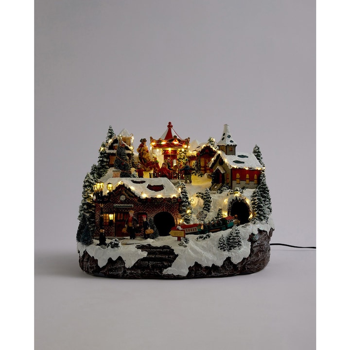 Aldeia com Carrossel com 83 Luzes LED e Música Presépio Americano