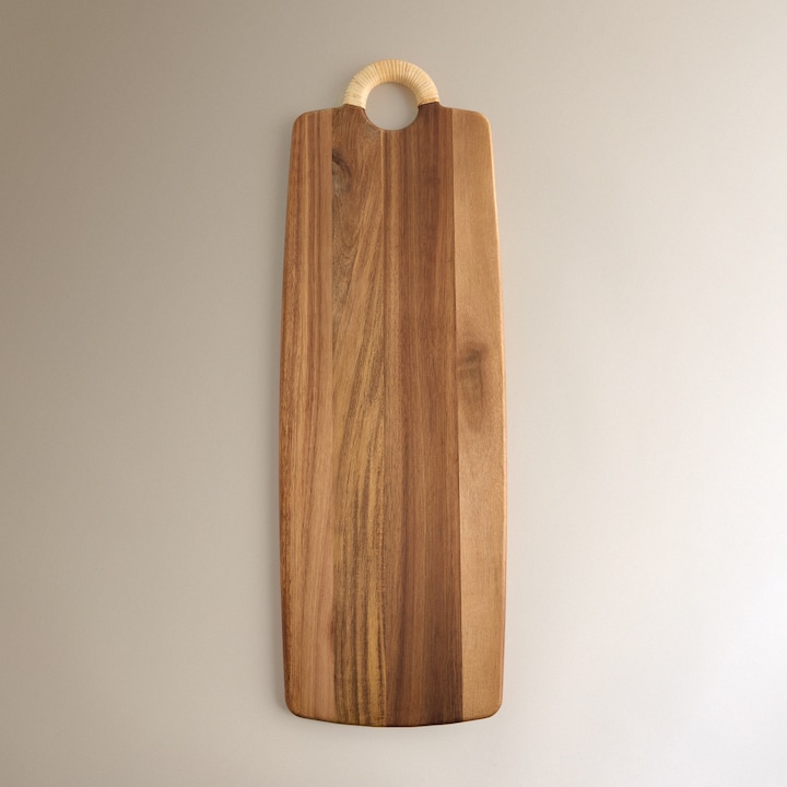 Tábua de cortar em madeira de acácia, concebida para cortar e picar alimentos com segurança e comodidade. Deve ser lavada à mão.